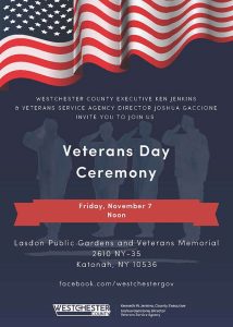Honor the Veterans of Westchester County at the annual Veterans Day Ceremony in the courtyard of the Veterans Museum.