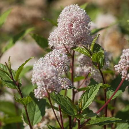 This American Beauties native has a storied American history on the east coast as its common name came from the fact that its foliage was used as a tea substitute during the Revolutionary War. Today, it’s just a great shrub that will thrive in a sunny, well-drained location! Four inch long, deep green leaves with hairy, gray reverse tightly pack this branchy plant to form a dense, compact, spreading plant that pushes flower stalks from leaf bases on the upper ends of branches in early May. Tiny white flowers cluster on these stalks in late May filling the garden with sweet fragrance and attracting butterflies and hummingbirds from far and wide. New Jersey Tea is easy to grow and drought resistant; it’s tough enough for rough landscape spots but refined enough to use as specimen or border planting in a more formal setting.