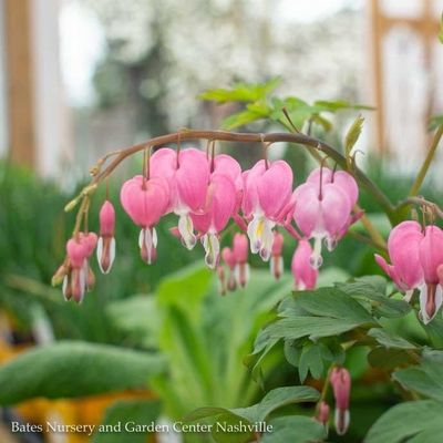 Old-fashioned bleeding heart. Largest flowers of the group, pleasantly pink. Round growth habit brings the plant to 30″ tall and wide. Blooms May through June. Potential mid-summer dormancy, yet will reflourish with sufficient moisture and shade.