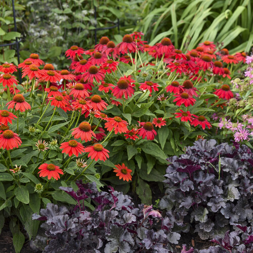 This incredibly colorful coneflower is a mixed strain showcasing shades of red flowers, including reddish-orange and pinkish red. A shorter plant that’s perfect for small spaces.