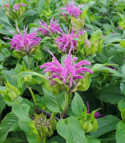 Buds open early July to reveal tubular, two-lipped violet blooms