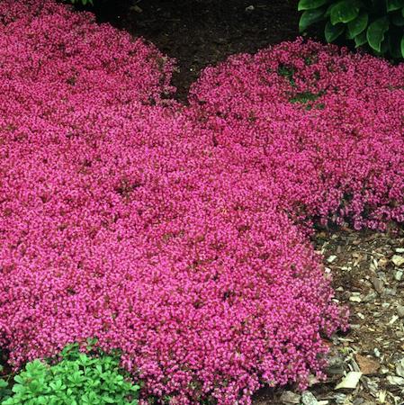 Prostrate growing and lush, this selection’s dark green, fine textured foliage dresses up rockery well especially when covered with its magenta-red flowers starting in late June. This plant loves well-drained soil, attracts butterflies, is deer resistant and evergreen. What a package!